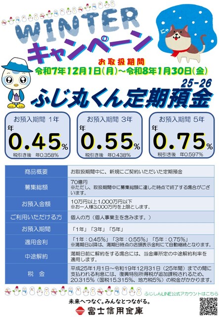 ウインターキャンペーン「ふじ丸くん定期預金25-26」